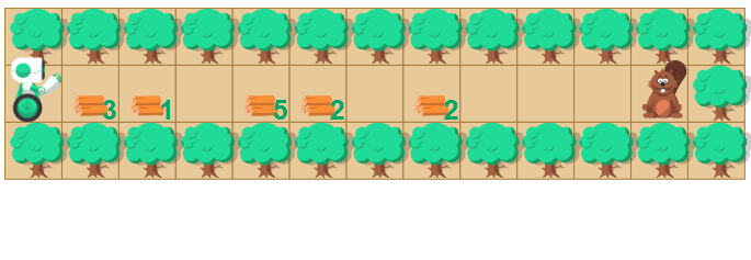 Der Roboter will dem Biber sein Lieblingsessen zu Weihnachten schenken. Auf dem Weg zum Biber möchte er dafür alles Holz einsammeln.