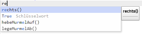 Tipp: Wenn du zu faul zum tippen bist, kannst du ab dem ersten Buchstaben Tabulator drücken und der Befehl wird automatisch mit dem ersten Vorschlag im angezeigten Menu vervollständigt. Als Beispiel siehe auch "Weiter Hinweise"